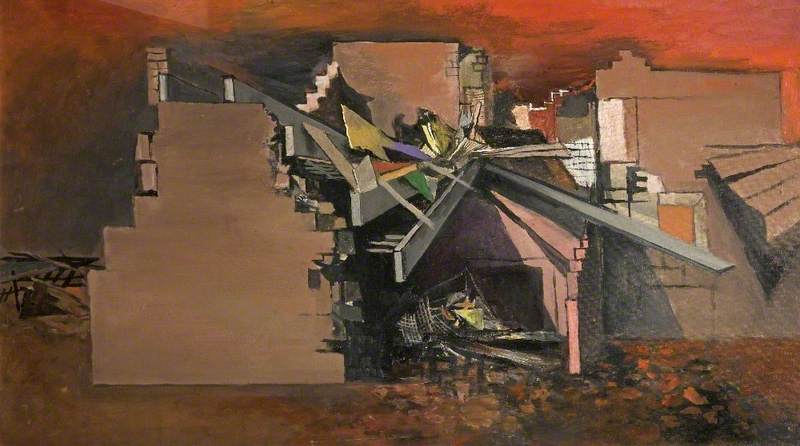 When I first came across this painting, in 1973, on first taking up the post at the Art Gallery and Museum, my initial reaction was a combination of the joy of having a work by a major modern British artist and an emotional horror at the scene depicted, or interpreted. That horror was because it brought back to me my personal experience of the devastation and suffering of WW2 bombing.
